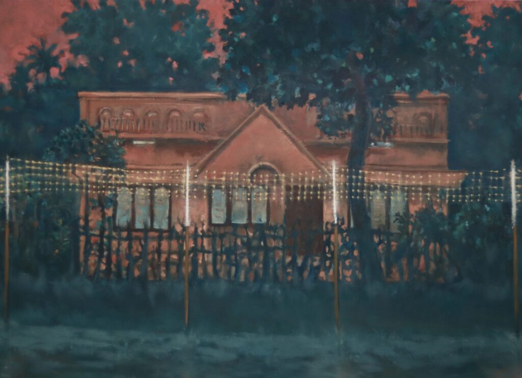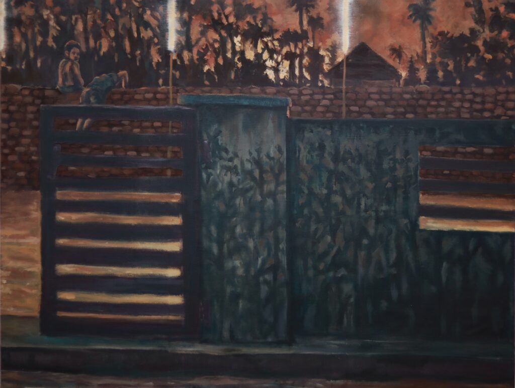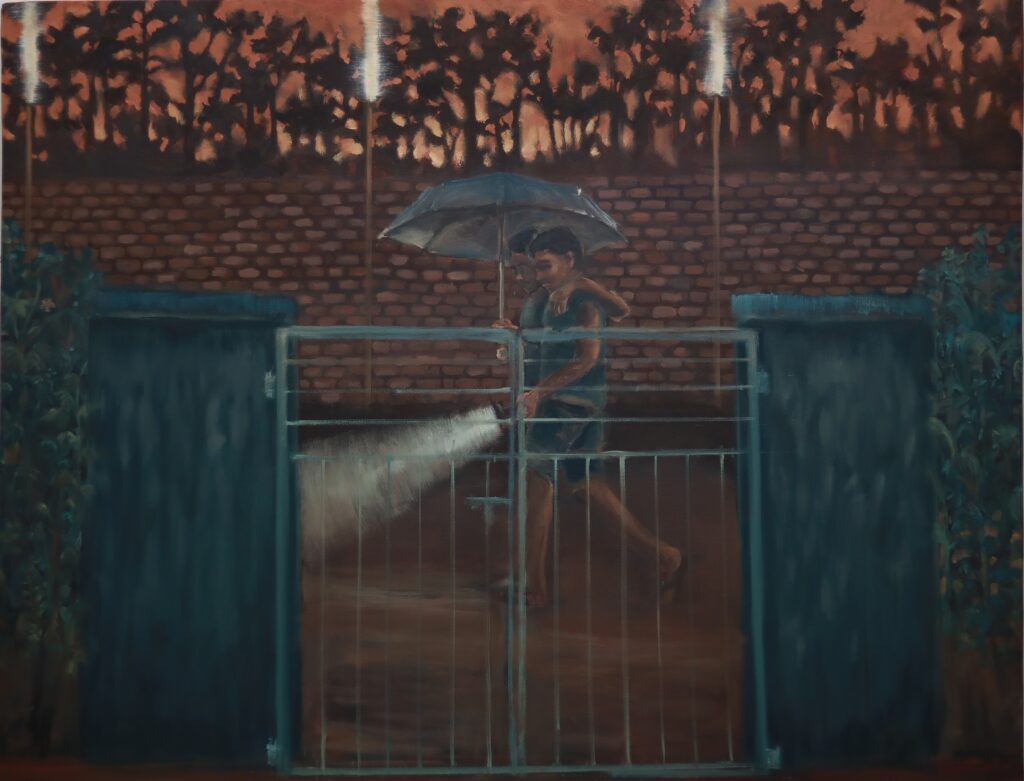A graduate in Painting from the Government College of Fine Arts, Thrissur, Arun is currently pursuing his first year of MFA in Painting at Visva-Bharati University, Santiniketan. He was awarded the Kerala Lalithakala Akademi Scholarship for 2025–26. His exhibitions include And I Rise Again, Kerala State Exhibition 2025 at the Kerala Lalithakala Akademi, Ernakulam; Niracharthu, NI-fest 9 National Art Camp Exhibition 2024, Thrissur; Visualising the First Person (2023); the Chola Art Award Exhibition 2024 at Chola Art Gallery, Chalakudy and Making from the Scratches (2022), Thrissur. He also participated in Not What We Seem, the Degree Show 2025 at the Govt. College of Fine Arts, Thrissur, alongside several camps and workshops that further shaped his artistic sensibility. Arun’s practice reflects on the fragile line between proximity and distance, where the structures we create – both tangible and intangible – become defining forces. Boundaries such as walls, doors, fences, or even social codes, operate with paradoxical force: they shelter while they exclude, connect while they divide. In his works, this duality is made palpable, drawing viewers into the friction of human-made separations and opening space to imagine possibilities beyond them.